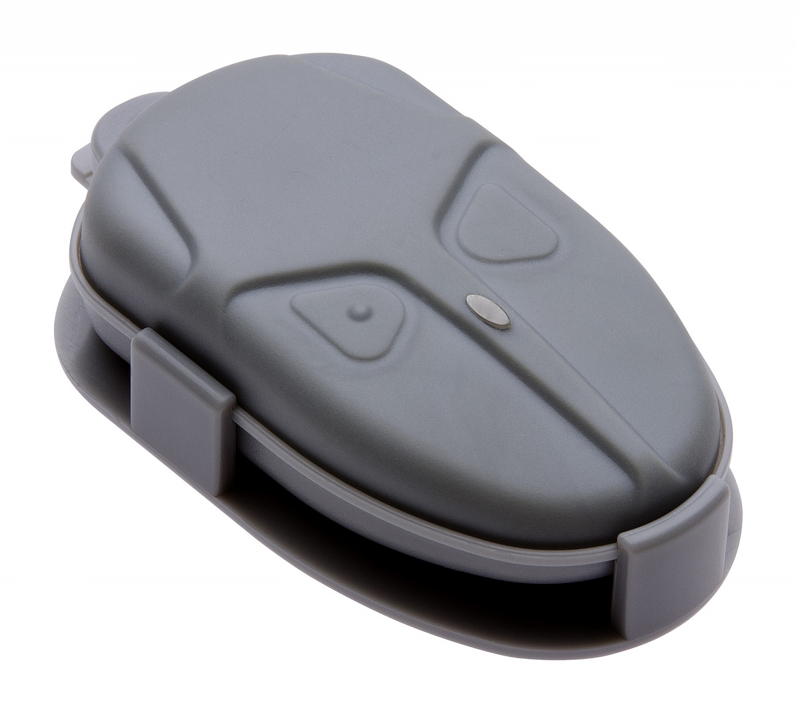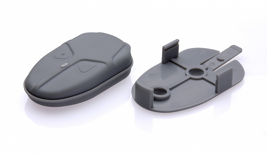 Данный вариант идентификатора выполнен в виде функционально законченного устройства в пластиковом корпусе с двумя кнопками и линзой двухцветного светодиода. В комплекте также поставляется держатель.