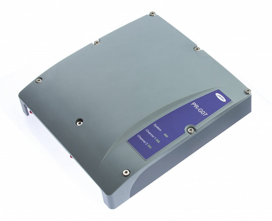 Каждый канал Parsec PR-G07.N осуществляет прием идентификационных кодов и одновременно может «обслуживать» 2 датчика автоматики ворот (шлагбаума) – датчик наличия автомобиля в зоне ворот и датчик состояния ворот. Через коаксиальный разъем к каналам подключаются собственные внешние антенны, а для сопряжения с другим оборудованием предусмотрены 2 многожильных сигнальных кабеля, выведенных через гермовводы. Для подключения к управляющему ПК предусмотрены интерфейсы RS-485 и Ethernet.
