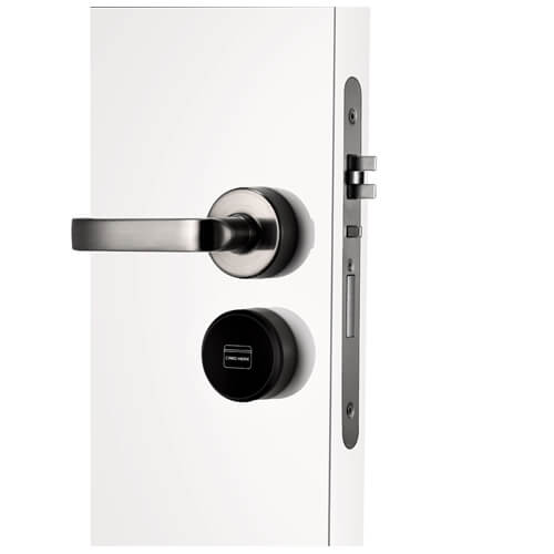 Врезной замок со сплит дизайном для гостиниц европейского стандарта. Мастер-карта для считывания журнала проходов Повышенная безопасность благодаря режиму двойной блокировки Считыватель карт Mifare 13,56 МГц Профессиональное и бесплатное программное обеспечение для управления замками в отеле