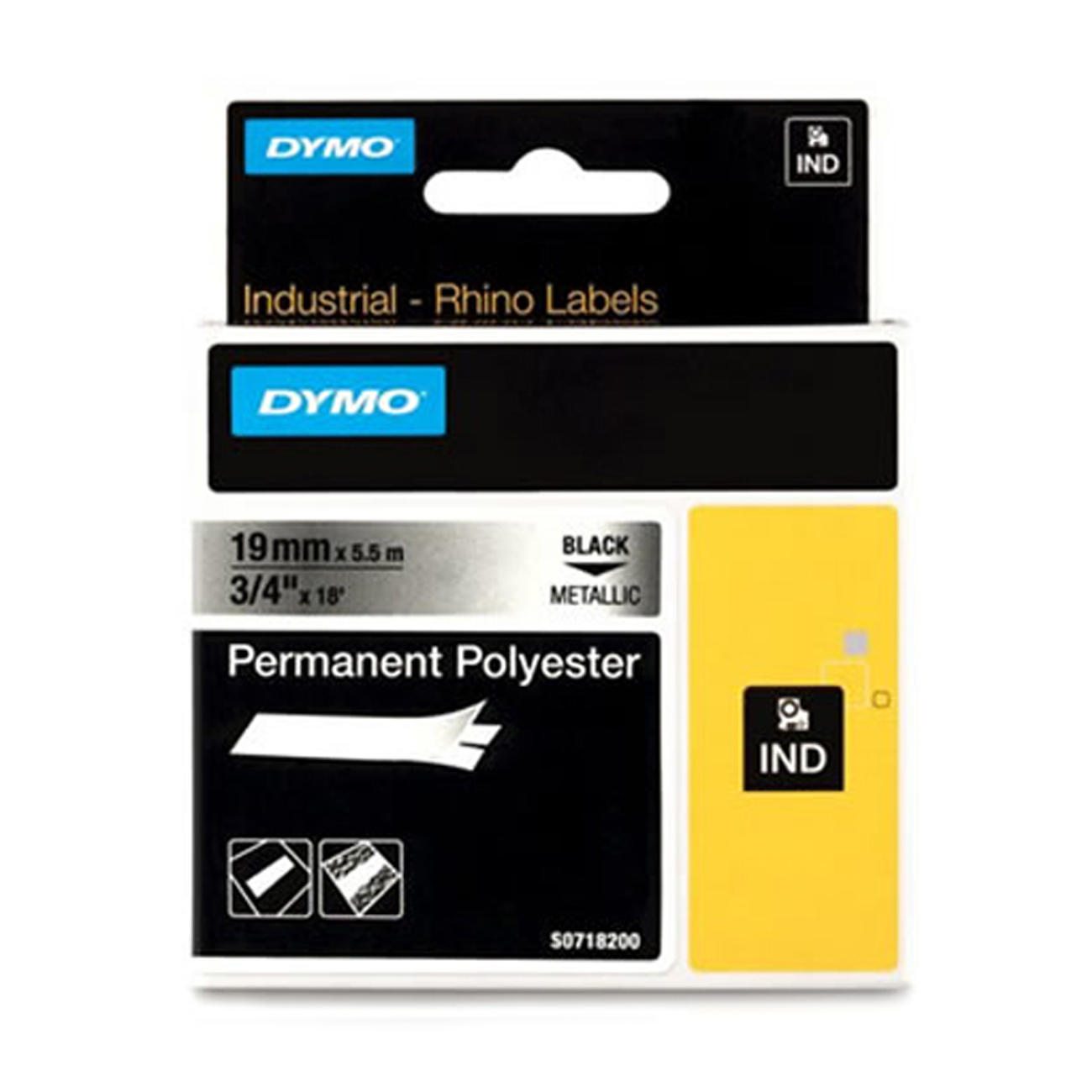 Полиэстеровая лента Dymo S0718200/18762/18487, черный текст на металлическом фоне. Ширина 19 мм, длина 5.5 м.