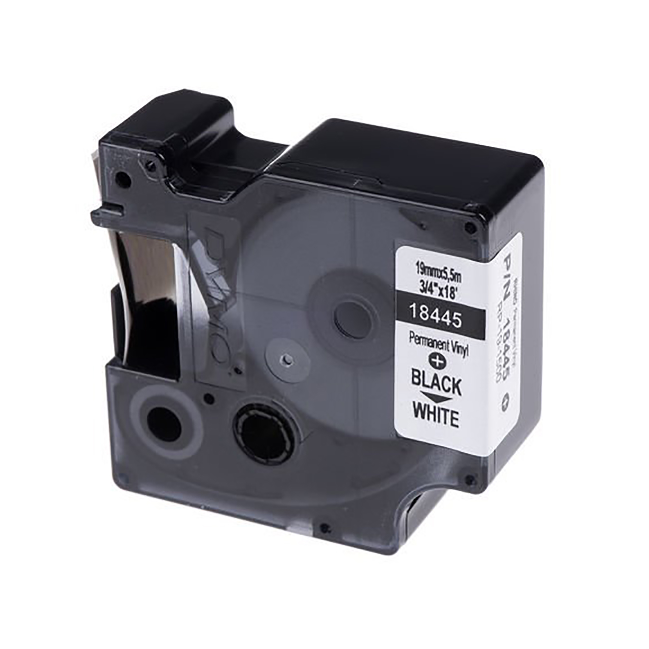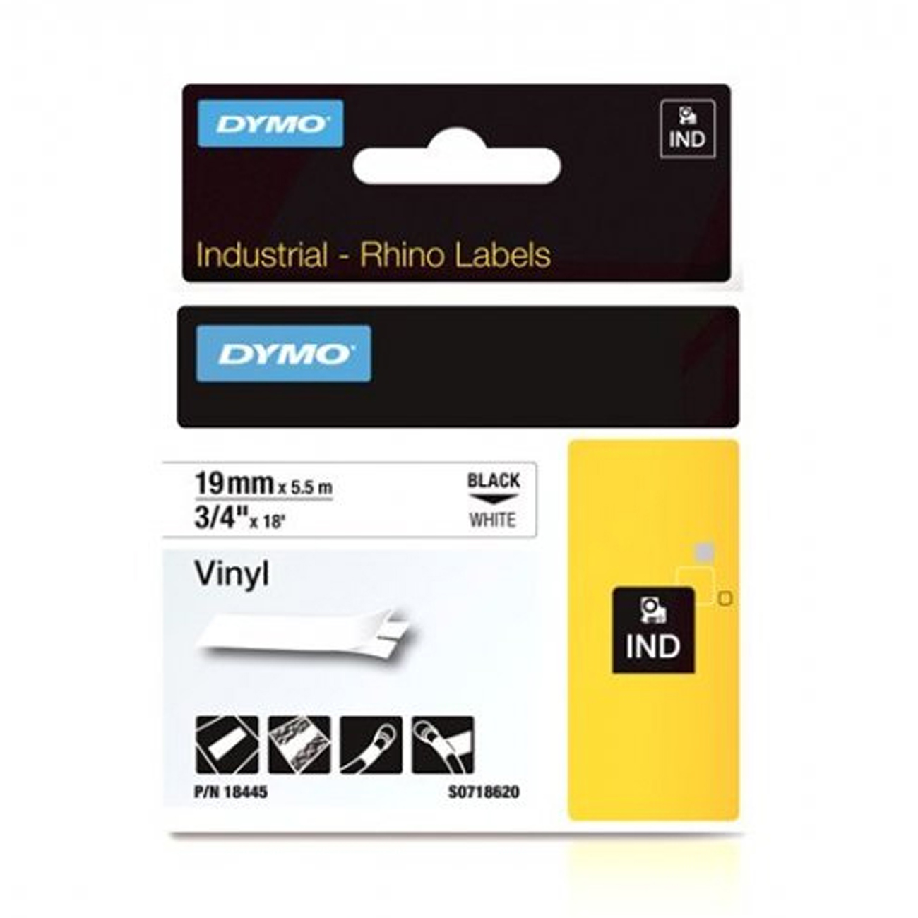Виниловая лента Dymo S0718620/18445 черный текст на белом фоне. Ширина 19 мм, длина 5.5 м.