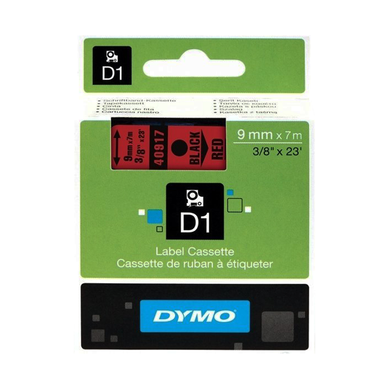 Пластиковая лента Dymo S0720720 типа D1, черный текст на красном фоне. Ширина 9 мм, длина 7 м.