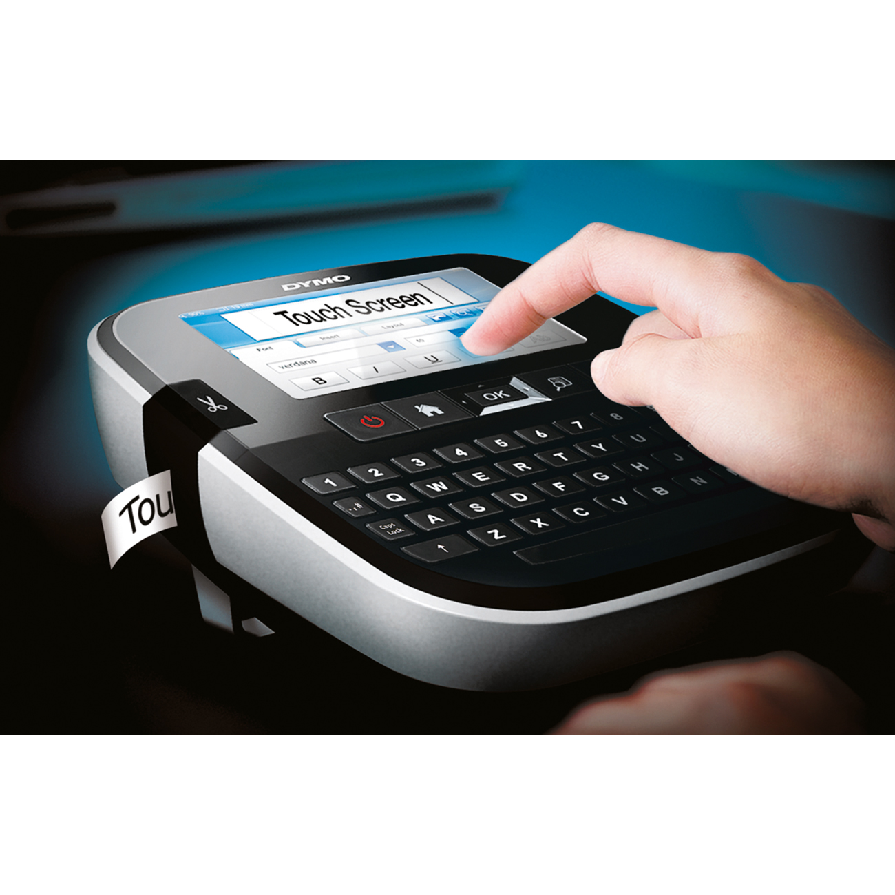 Единственный принтер Dymo с сенсорным экраном. Возможность печати различных этикеток до 24 мм. Клавиатура только на латинском языке, при подключении к компьютеру может печатать на русском. Label Manager 500TS имеет специальную технологию термопечати. Наклейки же защищены специальным слоем полиэтилена, что значительно увеличивает прочность и долговечность напечатанных наклеек.