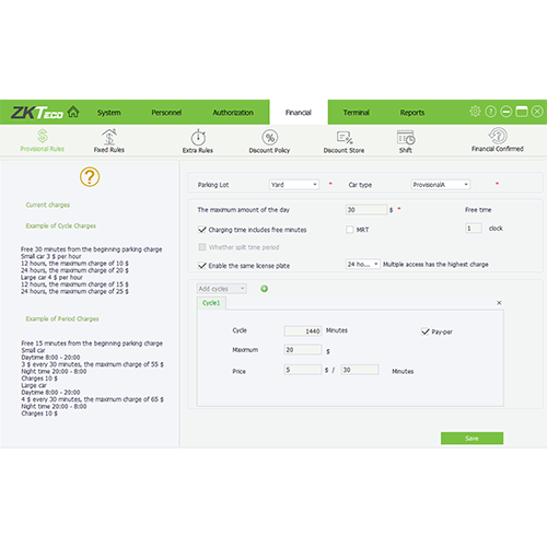 Программное обеспечение ZKParking разработано компанией ZKTeco специально для управления парковкой. Оно содержит шесть функциональных модулей: управление системой, управление персоналом, управление авторизацией, управление финансами, управление терминалами и управление отчетами. Благодаря удобному пользовательскому интерфейсу и обширному функционалу программа предоставляет самое полное профессиональное решение для управления паркингом.