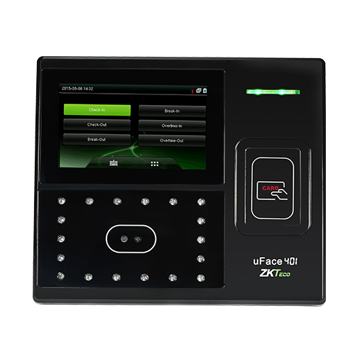 Мульти-биометрические терминалы uFace401 и uFace402 для учета рабочего времени и контроля доступа сотрудников с функцией распознавания лиц (3 000 шаблонов), отпечатков пальцев (4 000 шаблонов) и чтения RFID карт (10 000 шаблонов). Имеется встроенный цветной 4,3” TFT ЖК-дисплей с тач-скрином, удобное меню для настройки и управления. Он оснащен аппаратной платформой последнего поколения. Благодаря усовершенствованному алгоритму распознаванию лиц и технологии мульти-биометрической проверки значительно повышается уровень защиты всех объектов вашего предприятия.