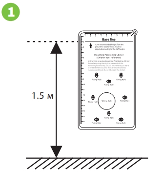 - Прикрепите наклейку с монтажным шаблоном к стене и просверлите отверстия по шаблону. Закрепите заднюю панель на стене с помощью крепежных винтов.