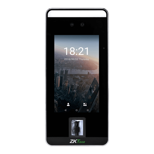 Биометрический терминал с распознаванием лиц (память шаблонов 6 000) на больших расстояниях и встроенный считыватель (память шаблонов 10 000) и RFID карт. Дистанция обнаружения увеличена до 3 метров, что позволяет идентифицировать быстро идущих людей. В то время как большинство алгоритмов поддерживают под углом не более 15 градусов распознавание, оборудование ZKTeco поддерживает распознавание лиц под углом до 30 градусов. А так же использует технологию бесконтактного распознавания и имеет новые функции – обнаружение повышенной температуры тела и может производить идентификацию лиц в масках. Устройства оснащены совершенным алгоритмом антиспуфинга. Распознавание ладоней по 3 признакам (форма ладони, отпечаток ладони и узор вен ладони) выполняется за 0,35 с.